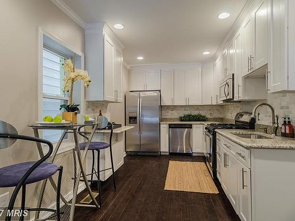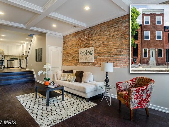 CLASSIC CANTON RENOVATION IN PRIME LOCATION WITH 4 FINISHED LEVELS & ROOFTOP DECK! Hw floors throughout, spacious LR w/ coffered ceiling & exp brick, custom eat-in kit w/ granite counters, ss applncs, & tile backsplash, 2nd lvl w/ 2 beds & 1 full bath, 3rd lvl Master bedroom w/ full bath & sep access to 2 tiered rooftop deck w/ amazing water/city views, finished basement w/ 4th bedroom & full bath