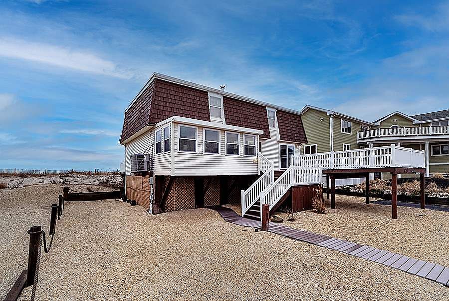 Very Rare & Beautiful Beachfront 4 bedroom 2.5 bath Single Family home with Panoramic Ocean & Bay Views and a total of 4 decks! Walk right in the front door to a bright Sun-Room with new laminate floors and enjoy the Sunsets. Open concept Dining room with new floors throughout, and newer sliders leading to the huge front deck with vinyl railings. Kitchen is updated with new granite countertops, Gas Range and White Cabinets. Also on this floor is a half bath with tiled floors, and a bonus room currently used as living room with gas fireplace yet could be transformed into a 5th bedroom with pocket door for privacy. Entertain friends and family on the back deck while taking in the breath taking direct Ocean Views. Second floor has a total of 4 bedrooms with a Full jack and Jill bath in hallway and additional Master suite with full bath and private deck with views from Cape May to Brigantine! Other features include Gas heat, central air, Huge enclosed storage space on ground floor with enclosed hot/cold shower and off street parking for 6+ cars! This is the lowest priced beachfront home and won't last long!