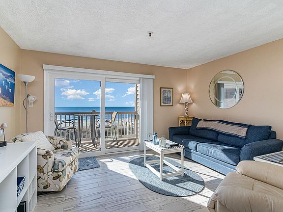 Welcome to paradise! The views are fantastic from this direct oceanfront 1 bed condo at Ocean Inn in North Myrtle Beach! Fully furnished, this turn key unit sleeps 6 and has been updated with a new HVAC in 2023, fresh paint, new composite exterior doors, new louvered exterior door new interior doors with new lever handle hardware, new garbage disposal in 2024, new balcony carpeting in 2025, the outdoor storage closet has been weatherproofed and paneled, and a hurricane proof sliding glass door was installed. Beautifully furnished and decorated with delightful beach accents, this condo features tile flooring throughout, a combo LG washer/dryer and a fully equipped kitchen with stainless appliances, granite counters, tile backsplash, abundant cabinet space and a breakfast bar. The nice sized living room boasts direct access to the balcony, a sleep sofa and a 55" TV and the bedroom has two double beds, plenty of closet space, a 43" TV and ensuite bath with tub shower. Savor the breathtaking views and warm sea breezes on the private balcony while enjoying your morning coffee or favorite book. There is also a storage closet on the balcony for all your beach equipment. Recent improvements to the building include new exterior stairways in January 2025, new roof in December 2022, new elevator in 2022, balcony railings on ocean side installed in 2021 and ocean side of building painted. The road side of the building is planned for painting in March and September 2025 . Wonderful central location close to the House of Blues and Barefoot Landing and just a short drive to everything Myrtle Beach has to offer including the airport, Broadway at the Beach, Market Common, restaurants, shopping, golf courses and entertainment. Whether you are looking for the perfect vacation getaway or an investment opportunity, this is a must see! Make an appointment to view this charming condo today!