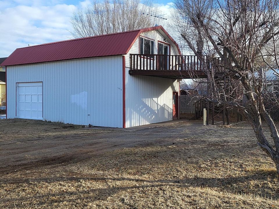 One bedroom barndiminium style residence above a large/garage/shop. Open floor plan. Large deck on south side and small balcony deck on the east side. Sunny and bright.
