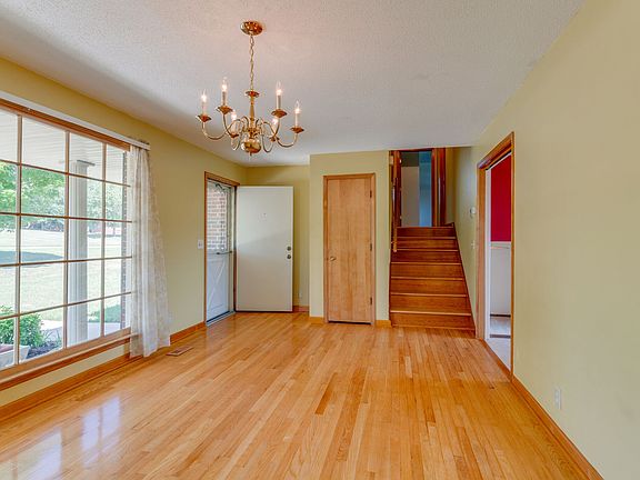 split level very clean brick home, 4 bedrooms and 2 baths, den, eat in kitchen with white cabinets, replacement windows. 3 year old central heat and air, appliances in kitchen stay, lots of hardwood, tile , extra closets, fenced in yard, 2 car garage, patio