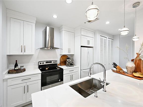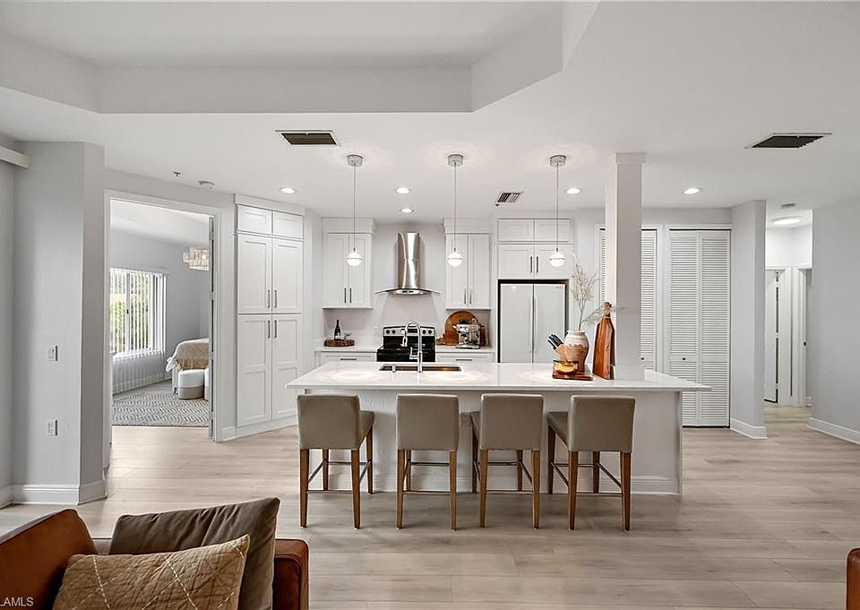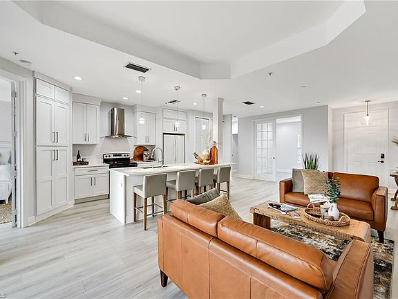 Looking for a fully remodeled home from floor to ceiling? No detail was missed with over $70k in remodeling. Light and bright open concept with nine-foot ceilings. Ten-foot center island with gleaming quartz countertops. Kitchen has new ceiling height self-closing shaker cabinetry with large built-in pantry, new stove, new hood fan and new built-in microwave drawer. Master bath has new glass shower stall and floor to ceiling marble tiles. Both bathrooms have brand new self-closing shaker cabinetry, toilets, under mount sinks and faucets. New high grade laminate floors installed with no transitions or seams. Wall to wall fresh paint, new lighting and window treatments and lanai screens. Stunning furnishings are negotiable! Jr. Olympic salt water pool, hot tub and Cabana bar. Fitness center, sauna, multi-purpose room, pickle ball and bocce all included with your purchase. Optional tennis membership, lighted for night play, with a USTA on site pro for lessons and clinics. Located in Sterling Oaks, an extremely popular gated community, minutes from beaches, Mercato, Promenade and RSW airport. Full one year HOME WARRANTY included with your purchase!