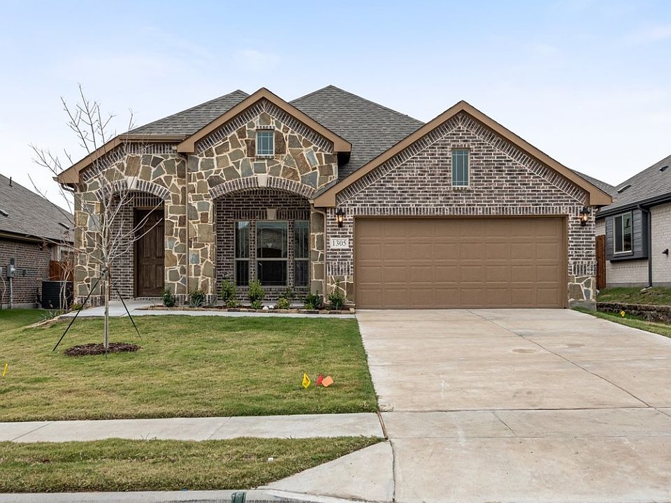 READY NOW! New Build from Bloomfield Homes in highly sought-after West Crossing community. Single-story with 3 bedrooms, 2 baths, and gorgeous open-concept layout. Stone & Brick elevation with a front sitting porch and East-Facing! Covered Patio in the back, giving you two large outdoor spaces ready to be transformed. Windows, windows, windows- Family room is bright & open with walls lined with windows looking out to the fenced backyard! Formal Study in front of the home off the entrance with French Doors to make the perfect home office. Charming Kitchen comes with all gas cooking on SS appliances, granite countertops, and 42in stained upper cabinets. The spacious Primary Suite has a window seat, 5-piece ensuite & walk-in closet. Upgraded Flooring throughout, ceiling fans, 2in window blinds & more! Be sure to ask about all the energy features included in each of our homes. Mortgage Assistance available. Call Bloomfield at West Crossing today to find out more about this stunning home!