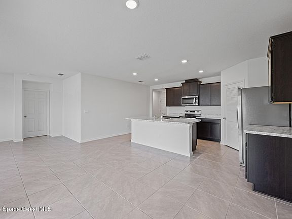 Built in 2023, this stunning Rockledge home combines modern design, functionality, and Florida charm. Step inside to a bright, open floor plan featuring high ceilings, recessed lighting, and stylish finishes throughout. The contemporary kitchen offers sleek cabinetry, stainless steel appliances, granite countertops, and a spacious island perfect for entertaining. The primary suite provides a peaceful retreat with a walk-in closet and a beautifully appointed bath with dual sinks and a walk-in shower. Additional bedrooms are generously sized, offering flexibility for family, guests, or a home office. Enjoy outdoor living on the covered patio overlooking a private backyard with plenty of space to add a pool or garden. Conveniently located near parks, schools, and shopping, this move-in-ready 2023 build delivers the best of modern Space Coast living!