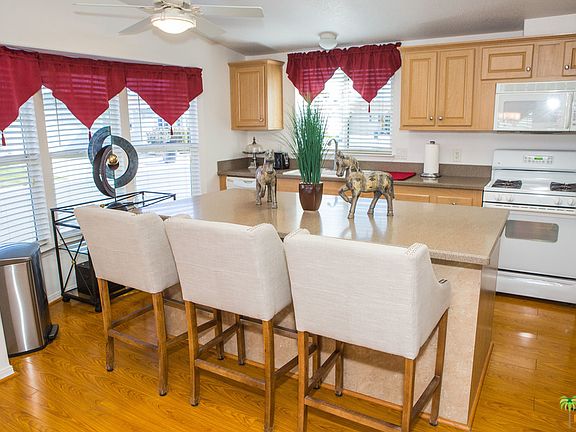 Absolutely Gorgeous and priced to sell, This beautiful home has all the beauty and comfort of homes costing much more. Beautifully updated and ready to go, this 2006 home shows like a model. Be the first to take a look at it before it's gone. From the gorgeous laminate floors to beautifully appointed breakfast island, this is a home you'll be proud to own. Also included are dual pane windows and doors, 6 inches of insulation in the walls, and a spacious attached two car garage, Desert Sands Mobile is an exclusive senior gated community with pool, spa, sauna, clubhouse, pool tables, card room, exercise room, tennis courts and onsite management. Current space rent for new owners is 747 per month