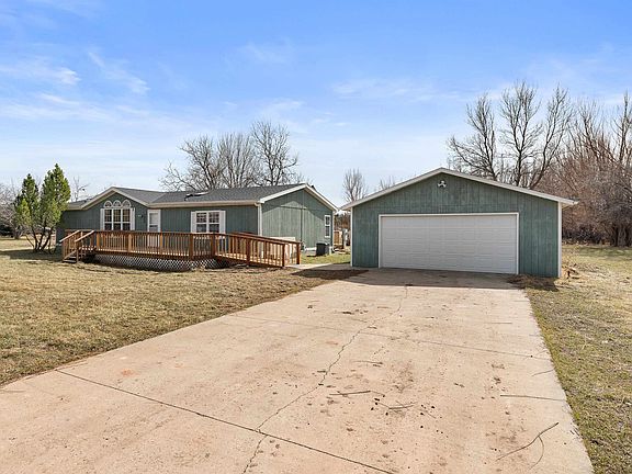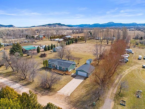 Listed by Debra Stewart, RE/MAX In The Hills. 605-645-9684. This lovely home is situated on 2.07 acres with lawn, trees and it just feels like a private haven although it is minutes to Spearfish, I-90 or Hwy 85. The front deck is accessed by a nice handicap ramp. The back door leads from the laundry room out to an enclosed patio with windows to the acres behind. There is a large counter top and is a great space to entertain. There is a stairway off that room to the 7ft x 12.5ft cellar that has poured concrete walls with foam insulation and a concrete floor. Great to keep canning goods and for use as a storm cellar. There are a few repairs left to be accomplished and the home is being sold as is; however, there is an engineer certified foundation and the home is very comfortable as is and the setting exudes peace and serenity. All information to be verified by buyer and buyer's agent.