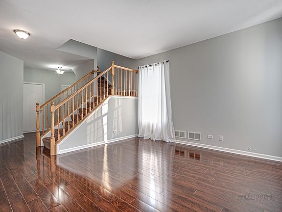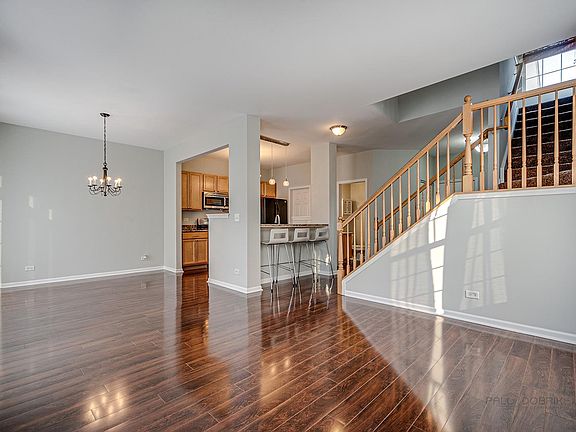 Updated and cared for by the original owners. Freshly painted! Sought after interior location, end unit showcasing upgrades galore. Beautiful rich wood laminate floors throughout entire main level. Designer light fixtures throughout the home. Inviting entry with guest closet and secondary closet for added storage. Chef's kitchen with 42" cabinets, granite counters, upgraded appliances, breakfast bar; great for a casual bite to eat. Check out that HUGE pantry; an organizers dream. Completely open main level with slider leading to the patio; perfect for entertaining or everyday living. Main bedroom suite with walk in closet and a private bathroom featuring luxury floors, granite counter and updated fixtures. A huge loft perfect for a home office/sitting area (can easily be converted to a 3rd bedroom), full bath and conveniently located laundry room a sure step saver with front loading washer and dryer complete the second floor. Patio with courtyard views. Attached two car garage an added bonus. Minutes away from 2 Metra stations, Round Lake Library and park.