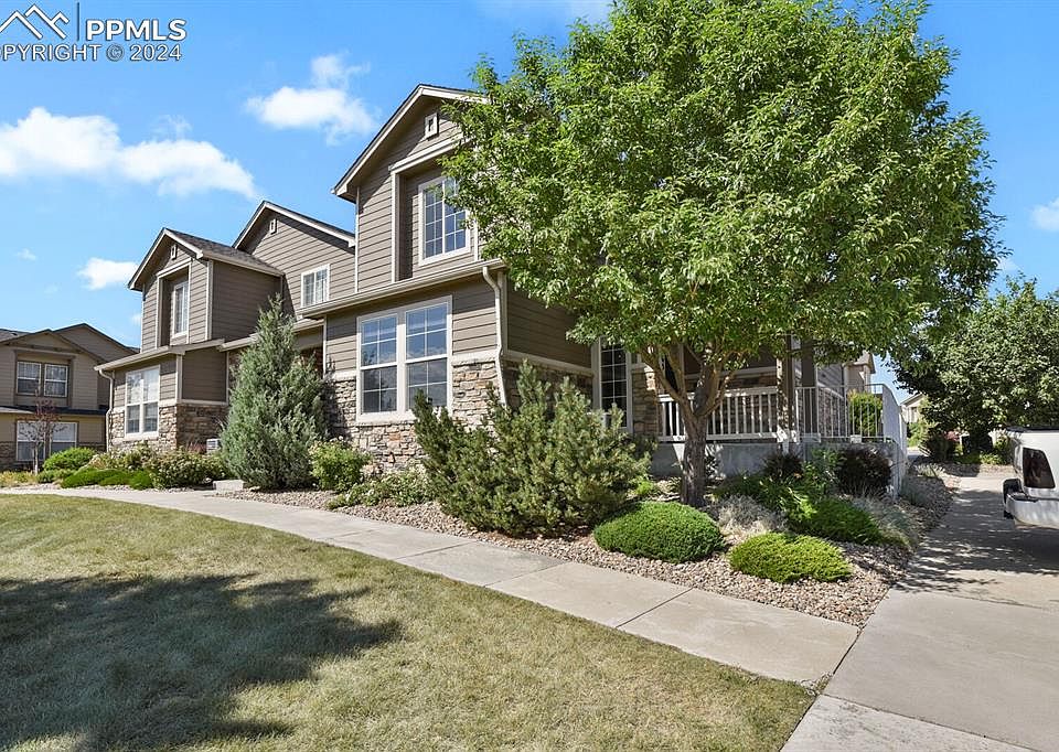 End Unit Townhome with Mountain Views located in the desirable Walters Commons complex of Woodmoor! Located across the street from Lewis Palmer High School. Convenient commute to Colorado Springs or Denver. Two Primary Suites w/ Walk-In Closets and Attached Bathrooms. Loft Space perfect for office or second living area with mountain views. LPV Floors throughout the main level. Smart Thermostat (Nest) and smoke detectors. Ring doorbell stays. Quartz countertops in the kitchen. Additional guest parking located in the front of this unit. Quick Move-In Available!