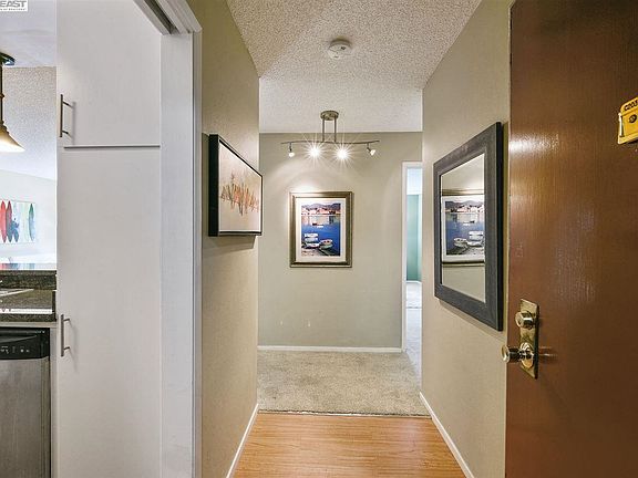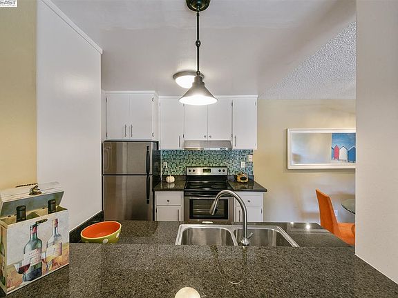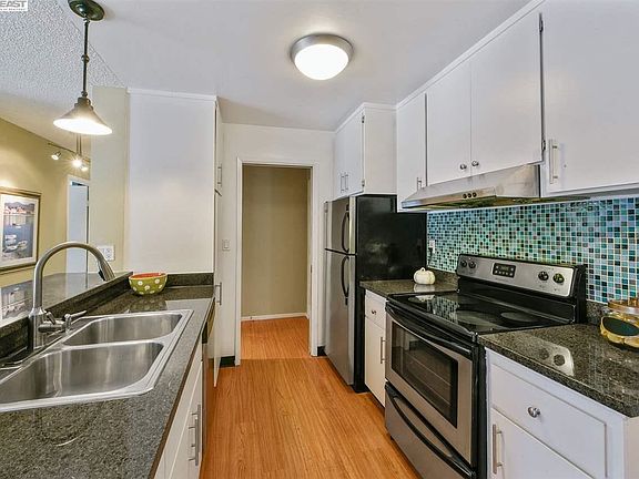 Resort-style living that's close to everything in Alameda's Park Webster condo. Proximity to SF via Ferry or Transbay Express Bus make this cozy one bedroom condo a commuter's delight. This unit is move-in ready. The living spaces - indoors & out - are large with private and greenery views from the balcony. Good sized bedroom. The kitchen features tile backsplash. One garage space and one secure storage area are included in addition to amenities like a pool and gym. Also close to casual carpool and lots of great dining! Close to Crab Cove, Alameda Landing, shopping, Alameda College and Webster Tube.