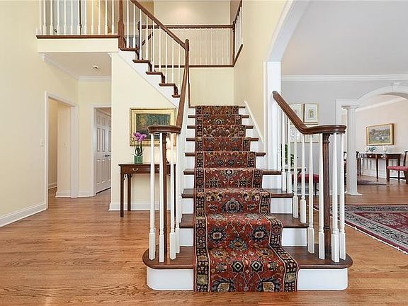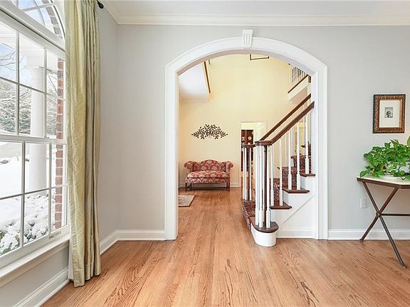 So much living space is this custom-built brick 3-story and a fantastic floor plan! Freshly painted in neutral colors, this stunning home offers beautiful architectural details & spacious room sizes. Open foyer w/classic staircase. Living rm features arched windows & gorgeous archways. ChefâEUR(tm)s kitchen features a coffered ceiling w/recessed lighting, plenty of cabinetry w/granite counters & SS appliances. A deck offers space to have meals & enjoy the wooded views. Family room features a gas FP flanked by custom built-ins & WW carpeting. MBR provides 2 walk-in closets & a spa-like MBA w/cathedral ceiling, dual dressing areas & jacuzzi tub. 3 additional BRs on 2nd fl have access to a hall bath & Jack âEUR˜n Jill bath. The 5th BR & full bath is on 3rd fl. Gameroom measures 40 x 17 & features w-w carpeting, gas FP & walk-out to patio. Additional rm could be extra BR/exercise rm. 2-person sauna, too! 3-car integral garage. Award-winning Upper St. Clair Schools.