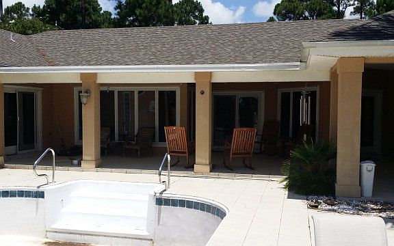 Great home with solid bones. Non working pool, deferred maintenance and some drywall damage inside make this home a fixer-upper. Pool in u shaped courtyard, perfect for entertaining. Privacy pool area, water view, custom furnishing built in the home. Furnishings negotiable.