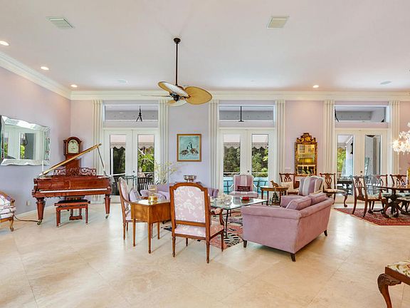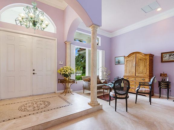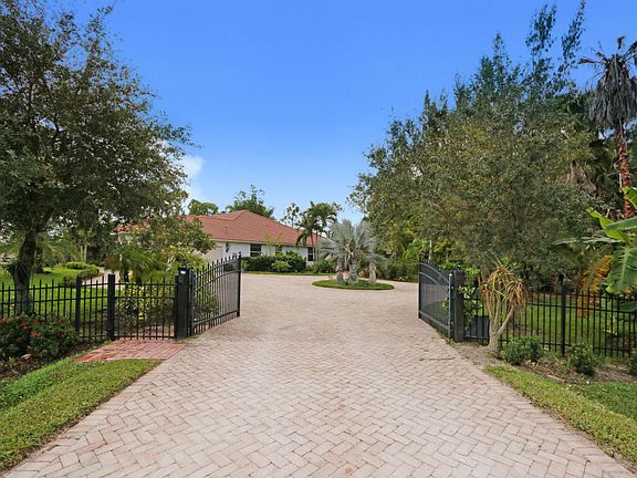 Quality built home on a beautifully landscaped 2.16 acre lot. Plantings include Canary Island Date Palms, Mango and Cocoa trees, rare Bamboo, Macadonia Nut and many others. Circular tumbled brick driveway. Recently remodeled Chef's gourmet kitchen features mahogany and marble counter tops, Miele burner range, Bosche dishwasher and subzero built in refrigerator. Grey, Black & natural wood cabinetry. The entire home has 24'' travertine top grade, diagonal marble. On suite bedroom offers an 18ft double shower, separate water closet with bidet, double vanity and tub. Front entrance features marble floor and custom designed hand wrought chandelier. Total home generator. Pool has built in pet safety ledge and sheet water fall. Many more extras to mention.