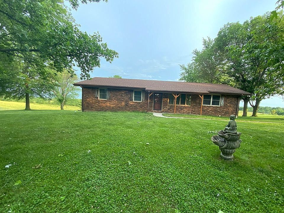 This home is located in a perfect location between Savannah and St Joseph. There's a formal dining room, living room with wood burning fireplace, master suite, 2 more bedrooms on the main level. There is a 4th non-confirming bedroom in the lower level, a family room that has just been completely renovated and includes a fireplace with a Buck Stove insert and 2 car garage. The tree shaded deck invites you to enjoy the panoramic view of the quiet 45 acres of pasture, pond and some timber. Added features of home are new windows on upper level, attic fan and water softener. The kitchen includes appliances and a reverse osmosis water system. This is a gem! Don't miss it.