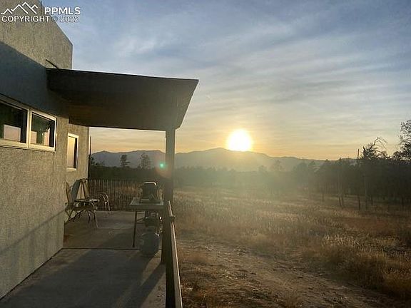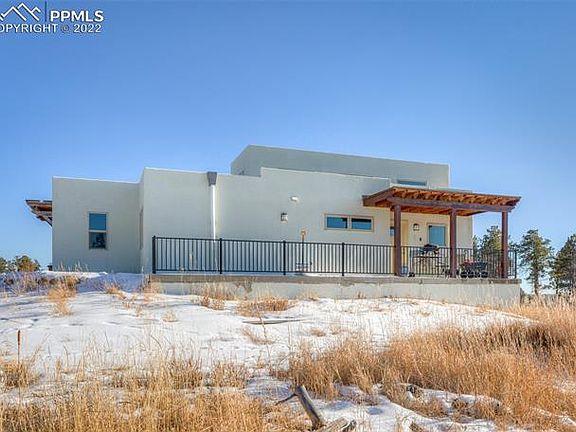 Welcome to the property of a lifetime! Main-level stucco rancher with breathtaking views of Pikes Peak from your covered patio. Enjoy 8.41 acres of peaceful Black Forest. High ceilings with various skylights to let in natural light. Living room features a wood-burning stove. Bamboo hardwood flooring throughout. Kitchen features stainless steel appliances, 50" cabinets and recessed lighting. (The original 1957 cabin home was lost in the Black Forest fire of 2013 and was professionally demolished/removed and completely rebuilt (Gillis Homes, Inc.) from the ground up in 2014 to include a new well drilled (Kunau Drilling, LLC) and final permits received by PPRBD.) **Smaller bedroom is "non-conforming" (no closet.) Conveniently located just 6 minutes from Highway 83.