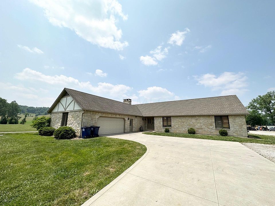 Sprawling Licking Valley ranch-style home, custom built by Jerry McClain situated on 5.6 park-like acres offers a peaceful country setting. Convenient one-floor living w/ 4 spacious bedrooms & 3 full bathrooms, first floor laundry, office & reverse osmosis system. Open concept w/ sunk-in living room, family room w/ fireplace & dining room. Kitchen w/ quartz countertops, breakfast bar, ample cabinets, pantry & SS appliances. Spacious owner's suite w/ double closets & en suite. Enjoy gorgeous views from the rear porch overlooking the in-ground pool w/ new liner & 48x34 insulated shop w/ 10' door, electric, water, gas furnace & 1/2 bath. Free gas & great location close to SR16 & schools. More photos to come!