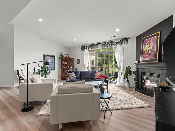 The airy 21.5' x 21' Great Room, with 11' vaulted ceilings, a striking fireplace, and oversized windows create a light-filled sanctuary. The chef's kitchen offers generous storage and endless counter space,, with the open concept dining room tying it all together. Access to the main covered porch brings the living space outdoorsThe large primary en suite extends to it's own private 8' x 22' porch; savor a cup of morning coffee overlooking the wooded conservancy. The en suite offers generous walk-in closet space and a luxurious bath. 2 additional light filled bedrooms share a full bath. In unit storage +additional storage. 3 garage spaces included.Internet /cable included in condo dues. Club Room w/ large deck available for Resident's use