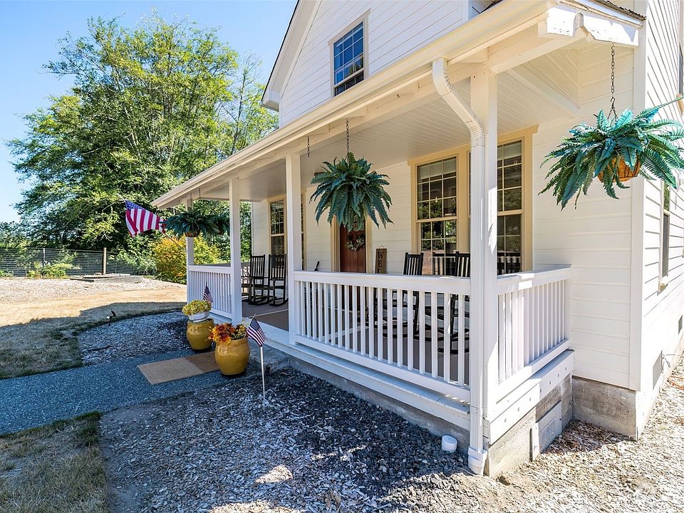 Darling Farmhouse Alert! This rare turn-of-the-century home is chock full of character! Sip and rock your worries away on the front porch. Inside take in the old world gleaming hardwood floors paired with updated kitchen - beautiful cabinetry (with pull-outs) & granite. The blend of new & old is done so tastefully! Living room, dining room, ample kitchen with coffee bar area, primary bedroom, main bathroom with radiant heat and office space and laundry room and all on the main floor. Upstairs are 2 bedrooms, 1/2 bath and family room, rec room or whatever you make of it! This gem is just a few parcels away from Olalla Winery and 1/2 mile from Olalla Bay Market and also very convenient for highway and ferry commuting. Equipment available.