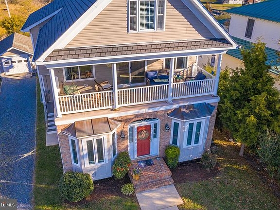 If you are looking for waterfront, look no further! This gem is tuck away at the mouth of the Potomac River and boasts some of the most spectacular sunsets you've ever seen! Features include a one car detached garage with plenty of work space, newer 3 zone, 2 unit HVAC and water heater, new insulation added to top floor attic, waterproof upgraded Anderson flooring on first and second floor and newer carpet, FIRST FLOOR owners suite, beautiful family room with freestanding gas stove, spacious kitchen and a separate dining room. Second level features a full balcony/deck with panoramic water views, huge family room, second owners suite and a kitchenette/wet bar with full size fridge, sink, dishwasher and plenty of cabinet space, AND, thats not all, the third floor has 2 bedrooms and a bathroom! Pier upgraded in 2015 and a new bulkhead on 2014! Also featured on your private pier is a 8,000 pound boat lift with upgraded electrical and cables, new electric and dock lighting to include a new LED fish light, fresh water hose on dock and large lockable dock locker/box, and a total of 2 boat slips.