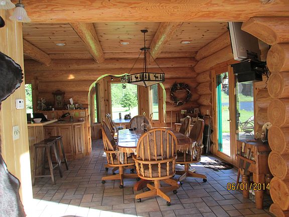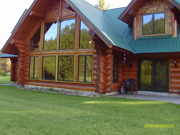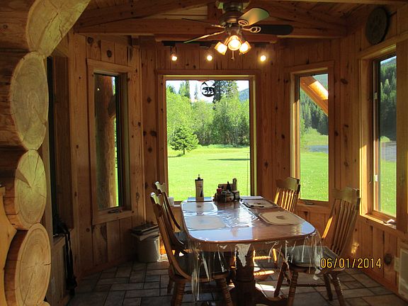 Approx 7 ac with a beautiful, large larch log home that sits on the bank of the Yaak River. Large windows in the great room & a breakfast nook give you wonderful views of the wildlife in the area-bear, moose, deer, elk, wolf & waterfowl. This 3 bedroom, 2 bath (plumbed for 3rd) home has many unique features: wood & glass entry door, specialty tile in the entryway leads to the bright & airy great room. Knotty hickory custom kitchen cabinets, radiant heat on the main & upper level. Loft sitting area.