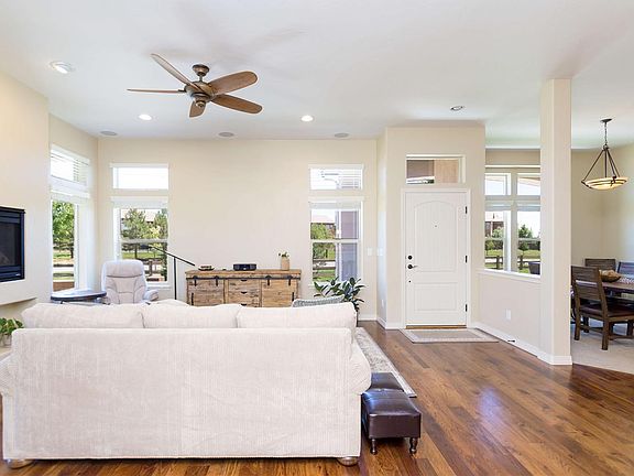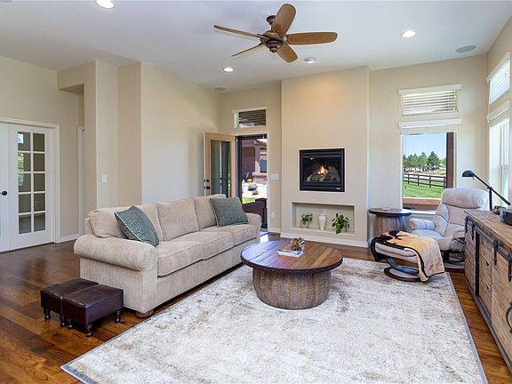 Fine Living, Great Neighbors, Maintenance Free Lifestyle In Prestigious Flying Horse. Home Has Extensive Upgrades Throughout Kitchen made for cooks, Quartz Counters, Stainless Appl, Gorgeous Designer Stepped Cabinets w/ Crown Molding, Glass, Subway Tile Backsplash, Stone Sink, Touch-Less Faucet, Large Pantry, Soft Close Doors And Seating Around Breakfast Bar, Making It Perfect For Entertaining, Hardwood Floors, Fireplace Surround Sound Built In. Lots of Natural light, Tinted windows, 4 Bedrooms PLUS Office, High Ceilings, This Home Is Made To Enjoy, Relax, Retire & Entertain In, Spacious Extended COVERED Walled In Patio With Gas Fire Pit Built In and Exterior Speakers, Enjoy the View Of Pikes Peak With Family & Friends, Retire To The Main Lvl Master Ste With Its Spa Inspired Bath, 36" Vanity, Frame-Less Glass Shower And Walk-In Closet, This Home Features Venetian Textured Walls, 10' Ceilings On Main Lvl And 9' Ceilings In Basement 5 Min I-25 Quick Commute to DTC. Academy Schools D-20