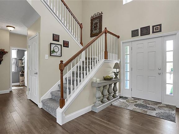 Lovely and updated home with original owners. Home offers 4 bedrooms, an office on main floor, finished basement, newly added wood laminate floors on first level in 2017, new ceramic tile in bathrooms in 2019, New Carpet in 2018, New exterior paint in 2018. Basement is finished and offers a full bathroom and a TV projector that stays with home. Master suite has dbl. sink vanities, garden tub with separate shower and walk-in closet. Patio has been expanded and overlooks the mature landscaping. Home is located in the Springs section of Avalon. It's walking distance from Thorpe Creek Elementary and HSE high school. It's also just around the corner from neighborhood pools, tennis, volleyball, basketball and park. Garage has a bump out.