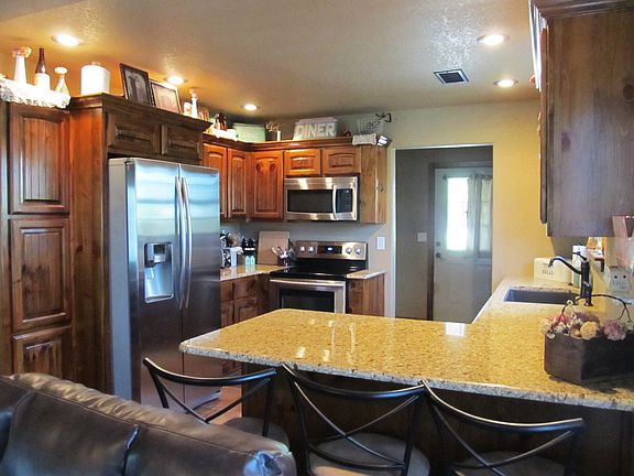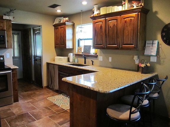 Custom Brick Home on 7.75 Acres! ? This one is awesome! Lots of unique features. ? Started in 2013 and finished in 2014 it has 2 bedrooms, 2 bathrooms, a beautiful kitchen and all the stainless steel appliances stay. Owners are also putting in a new dishwasher. Stove is electric with 5 burners. It also has a vent-hood microwave, large refridgerator, garbage disposal and gorgeous granite counter tops! The cabinets are solid wood beautiful knotty pine. ? The kitchen is open to the living room which is inviting and has vaulted 12 foot ceiling. The home has tile and carpet and bulldog nose corners. ? The master bedroom has an enormous walk-in closet and recessed ceiling to give it a custom look and feel. The master bath has double sinks, large tiled shower and a soaker tub. ? The extra bathroom is a full bath with tub & tiled shower combo. ? The home also has a great front porch to sit and relax after a long day at work. ? Outside there is even more! Owners have run approximately 10 head of cattle, but it would really be a great horse setup. There is a small pond that is plenty deep, new 7 wire fencing around the pasture, plenty of large trees and even a 52 x 30 shop/barn with 12 foot sheds off each side! ? Give Pam a call before this gem is gone!
