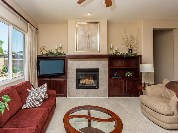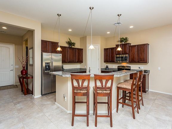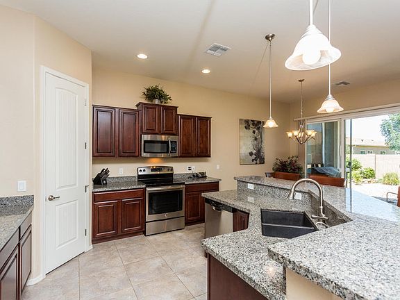 Wow, this is a SWEET property! Offered by original owners, better than new...tastefully landscaped in front and back with rear covered patio. You will love the open floor plan, high ceilings, generous amount of 20'' tile on floors, plus granite counter in kitchen. Includes refrigerator. Built in 2013 and includes custom built-in cabinets next to gas fireplace. Bonus: 2 ft extended length garage + ''hog pen'' on the garage side, or area for workbench... this home is in pristine condition!