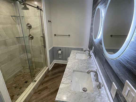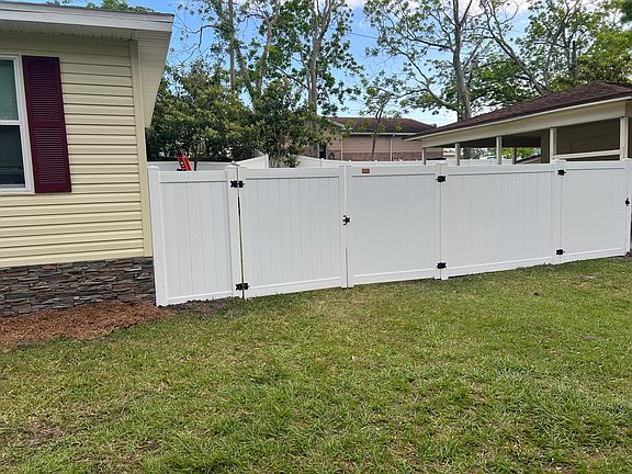 Fenced -in yard with double gate allows you to store your boat or RV . County Living on quiet street . Brand new built home , block foundation, framed home with brand new vinyl siding . Brand new everything, including dry wall , kitchen , all new cabinets, granite countertops, stainless steel appliances. French door fridge with filtered water and ice . New painted and textured walls , hardwood floors throughout, new bathrooms, vanities , showers , plumbing. New light fixtures throughout . New hot water tank . New thermo insulated windows , new siding on exterior, new shutters , front door , front screened patio with large wood deck . Deck outside backdoor 12 x 8 . Nice large backyard . Quiet area , nice neighborhood. More pictures to follow . Fenced backyard with 1 single gate and 1 double gate . Not a modular home or trailer.