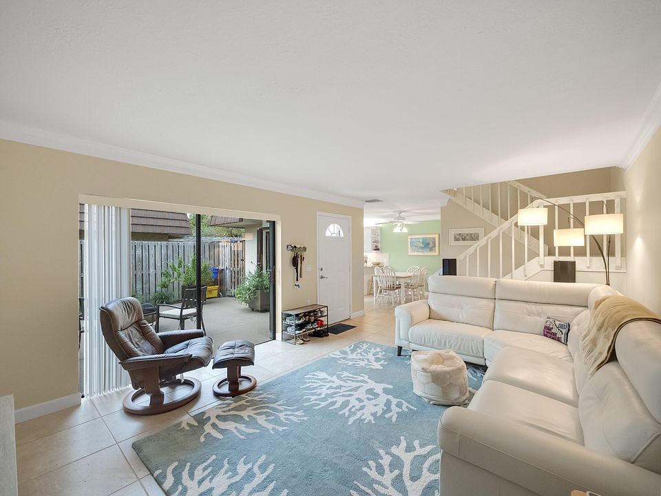 Highly Sought after Garden Lakes townhome! Beautiful, ready to move right in! 3 bedrooms, 2.5 baths. Tile floors throughout downstairs, Berber carpet upstairs. Updated kitchen and baths. Granite counters in kitchen, marble counters in bathrooms w travertine floors. Roof and A/C replaced in 2019! Accordion shutters installed in 2021. Private courtyard with a Southwest exposure; Great for the afternoon sun to cut down on mold on the patio. Freshly painted patio, crown molding, water filtration system under kitchen sink, flat ceilings w popcorn removed, California closets in both upstairs bedrooms, retractable screen on front door. Truly ready to be a turnkey property for new owner! Garden Lakes has low Hoa fees, w a prime location in the heart of Palm Beach Gardens. Don't miss this one