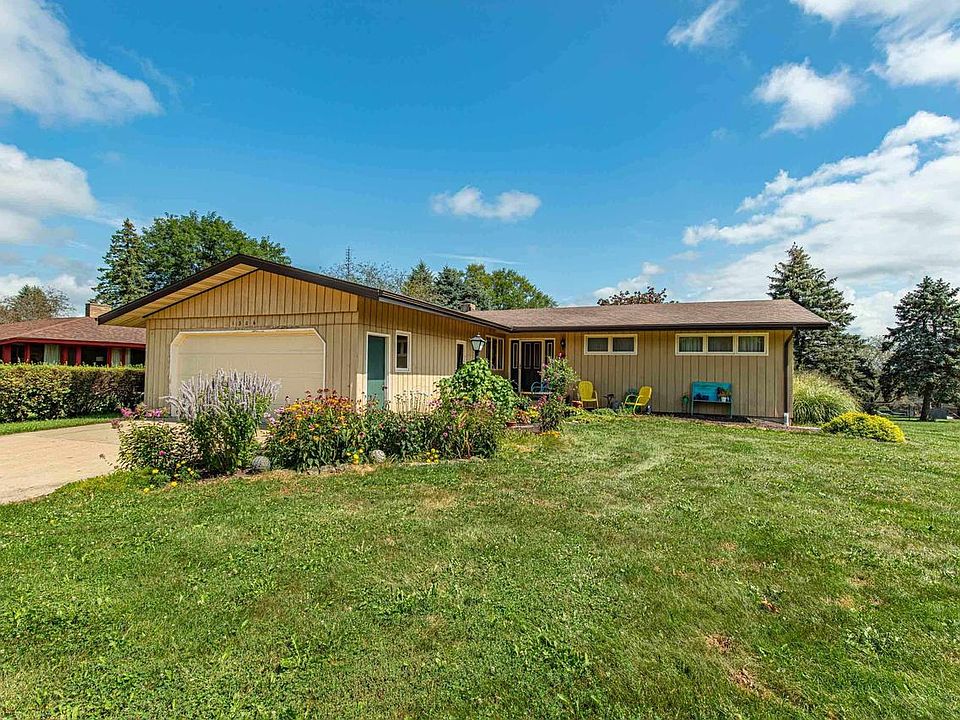 Sprawling ranch home in New Glarus! Cheery gardens welcome you to this inviting home. Spacious entry opens into the living room, leading to a cozy family room with fireplace and walk-out to deck. The seller loves the functional kitchen with half bath nearby. Eat-in area opens to formal dining! On the opposite end are 3 bedrooms, including the primary with access to the laundry and a walk-through to the full bath. Recent updates include new flooring in main living areas and some windows. Convenient 2-car garage. Walking distance to schools! Current owner has lived here and lovingly cared for this home for 48 years - ready for you to make your personal touches and memories!