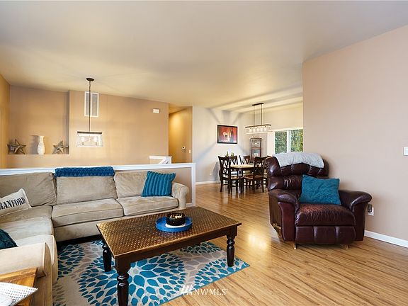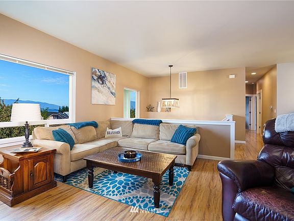 Fabulous sweeping PNW views of Mt Baker, Fidalgo Bay and Cap Sante from this pristine 3 bedroom in-town home. Newly updated kitchen with stainless steel appliances and granite counters. Hardwood floors throughout the modern open-concept living area with an inviting gas fireplace in the living room. Primary bedroom suite with walk-in closet, full bath and views. Large downstairs bonus room currently set up as rec room and 4th bedroom. Fully fenced yard with deck and fruit trees. Large garage with lots of storage space. Meticulously maintained. Convenient location close to town, schools, hospital, and easy access to highway 20.