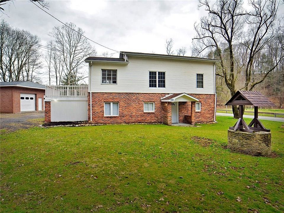 6 CAR DETACHED GARAGE WITH ELECTRIC is a highlight of this unique RAISED RANCH. The main living area is on the upper level, but the entry level has endless possibilities. One room is perfect as the third bedroom with a powder room, for convenience. Freshly painted and move in ready. Living/Family room on upper level opens to a knotty pine 3 season room that opens to a deck, to enjoy some outside space. Wonderful corner lot in a country setting, but so close to parkway and turnpike. Great hardwoods and newer windows, updated baths and kitchen. The all brick, 6 car garage measures 32'x42' and is 12' in height. Has 2 garage doors plus a man door. 200amp electrical box will service all of your tools. Garage floor is 8" of concrete, plumbed every 6" for radiant heat, just needs a boiler. The garage is prepped for a lift, there was a 12'x10' space (no tubing) left open to install lift. Shed on property for extra storage. HSA HOME WARRANTY INCLUDED.