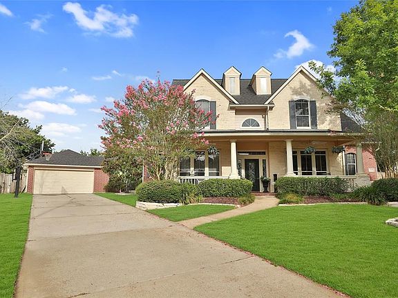 This GEM in Gleannloch Farms is the perfect home for you!! Impressive entry with soaring ceilings, private study, & wide staircase that leads to the catwalk that overlooks the downstairs open floor plan. Light filled family room with stacked stone fireplace opens to a gourmet kitchen with huge island & breakfast bar. Master suite features tray ceiling, updated luxury bath with jetted tub, frameless glass shower, & walk-in closet. Upstairs you\'ll find a game room with 3 additional bedrooms, & bedrooms 3 & 4 have a hollywood bath. Beautiful stone and brick exterior w/ front porch, OUTDOOR KITCHEN, fully landscaped yard with irrigation, mature trees, and plenty of room for pool with this 15,000 sq ft lot. Located on a quiet cul-de-sac with no back neighbors, & there are several nearby neighborhood amenities such as pool, parks, tennis courts & lakes with catch & release fishing. Newer roof & A/C\'s. Never flooded, & not in a flood zone. This home has a lot to offer, so come take a look!