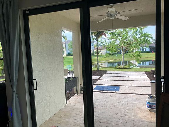 Welcome home! This former MODEL HOUSE is a NEW CONSTRUCTION RESALE in lovely Bella sera! Gorgeous pond view from main living room and kitchen. Enjoy relaxing or grillin' on the spacious covered patio. Smart home with all the modern touches you expect. IMPACT GLASS throughout! 1 lower level bedroom and full bathroom with glass door shower. Front living room area works as either living room, formal dining or office space. Diagonal white tile flooring. White quartz countertops and soft-close drawers in kitchen and baths. Upstairs: LARGE MASTER SUITE with HUGE walk-in-closet and large on-suite bath. 2 Additional cheery bedrooms. 2-car garage. Buyer’s AGENTS OK, 2.5%.