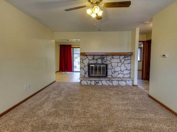 Wow! Move right into this two-bedroom, one full bath second floor Willow Springs Condo with two garages! This unit is freshly painted and has new carpet and vinyl flooring in the hall and bath. The large eat-in kitchen features ceramic tile, plenty of cabinets and pantry space, a dishwasher, an electric flat-top range, and a large refrigerator with a bottom mount freezer. The sunny living room has a wood-burning fireplace. The two spacious bedrooms both feature walk-in closets. In the hall, you'll find a conveniently located laundry room, and the washer and dryer stay! Walk outside the sliding door onto the elevated deck with a view of the courtyard. Since this building is situated farther away from the highway, you'll enjoy minimal traffic noise. There is not one, but two garages located in the garage building, great for parking your car and storing your stuff! The $140 monthly membership in the Willow Springs Condo Association includes common area insurance, exterior maintenance, lawn care, snow removal, and access to the outdoor pool and clubhouse. Be sure to view the 3D tour.