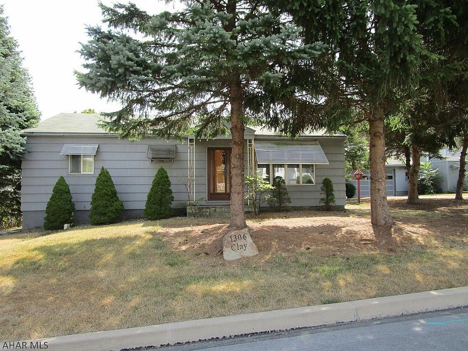 Nice ranch 2 bedroom 1 bath home in Tyrone Borough. Updated kitchen. Sun room. Lots of potential! Close to schools. Mature lot with Over-sized heated 2 car garage. Garage also has water and electricity. Carport.
