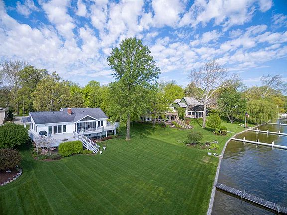 A truly remarkable home on over 100 feet of prime Winona Lake frontage with concrete seawall and sandy beach. This home welcomes you with open concept living spaces featuring hardwood floors, stone fireplace and impressive views of the lake from every room. Main level master suite with his and hers closets including a cedar lined closet plus tiled walk in shower. Nearby second bedroom, full guest bath and large laundry room with built in storage. Finished walk out basement with large family room, third bedroom with bath as well as an oversized storage area. Additional amenities include built-ins, screened in porch, 1,500 sq. ft. wrap around lakeside deck, built in generator, 3-car garage, surround sound and .40 acre lot!
