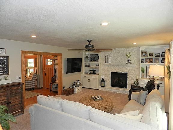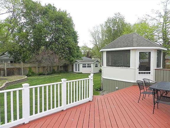 Charming 1 1/2 Story with Amenities. Small town living at its best. Almost 3100 SF in this 1 ½ Story with charm, space, and modern amenities on a large-landscaped lot with mature trees. Incredible main floor master suite addition with 2 large closets, master bathroom with shower, soaking tub, and slider to deck. Cozy up in large family room with gas log frplc or amazing front room for family get-togethers. Additional ¾ bathroom. This is a dream for the cook in your family, huge kitchen with tons of cabinets, island, and wine cooler refrigerator. Upstairs features two more bedrooms and a full bathroom with tiled walk-in shower, clawfoot tub and tiled floors. Enjoy 2nd family room in lower level, spacious laundry room with cabinets, countertops plus extra work room and tons of storage. Get ready to entertain on the oversized deck, gazebo that overlooks beautiful yard. The additional shed with electrical and 3+ car garage is a dream. All located in an established neighborhood.
