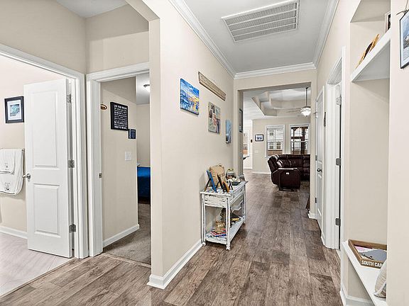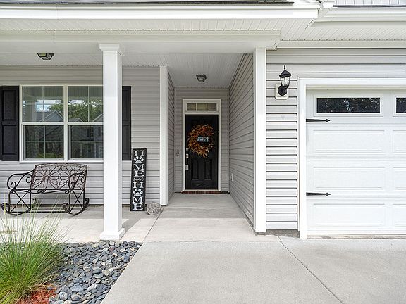 Nestled within the quiet neighborhood of Hunter's Bend sits this picturesque single level home! A cozy front porch welcomes you as you make your way to the front door. Upon entering the home you are met with stunning wood flooring that flows throughout the main level, crown moulding that draws your eyes up to the high, smooth ceilings and a soothing, neutral paint palette that will complement any design aesthetic. A built in nook, conveniently located near the laundry room, is an ideal drop zone for shoes and bags! The living room boasts a jaw dropping tray ceiling and multiple windows allow natural light to stream into the room. The kitchen is every cook's dream! Upgraded 36'' maple cabinetry in a beautiful creamy tone, perfectly complements the backsplash and gorgeous granite countertopsA pantry offers additional storage space! Brushed nickel hardware, shiplap accents and beautiful pendant lighting over the large island make this kitchen shine! Matching stainless steel appliances, including an upgraded stove, complete the space. The sun soaked dining room boasts a charming chair rail and overlooks the backyard. The primary bedroom will become your serene, relaxing haven and boasts a tray ceiling, walk in closet and attached en suite. With herringbone tile, a dual sink vanity, granite countertops and large walk in shower, this en suite will leave you feeling like you just left the spa! Two additional bedrooms are generous in size and share access to a hall bath. A beautiful screened in, 3 season porch overlooks your private backyard oasis! A paver patio, sitting wall, firepit and grill area is the perfect area for entertaining friends and family! This beautiful home offers many upgrades and thoughtful touches such as Schlage door knobs, designer tint on the windows to provide privacy, lights in the backyard and along the sides of the home to ensure visibility in the evenings and rain gutters. Washer and dryer to convey! Conveniently located to shopping, dining and the Trident Medical Center and with access to community walking/jogging trails and a pool, this home will not last long! Schedule your showing today!