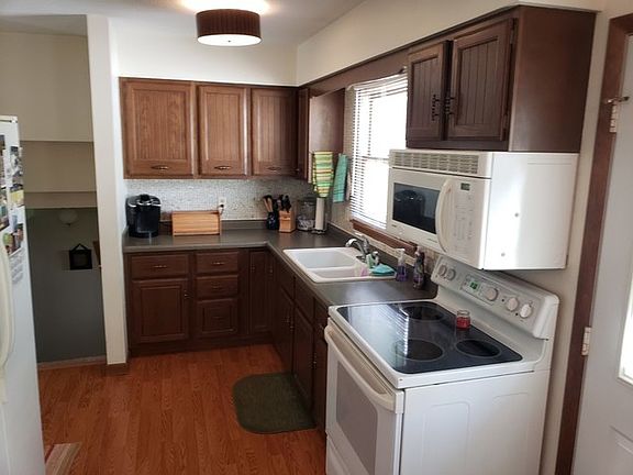 New roof to be put on prior to close with accepted offer. Buyer can pick color of shingles. Newer flooring in living room and kitchen. New counter top and sink in kitchen. Appliances include stove, refrigerator, dishwasher, and microwave. Freshly painted interior. L-shaped family room.
