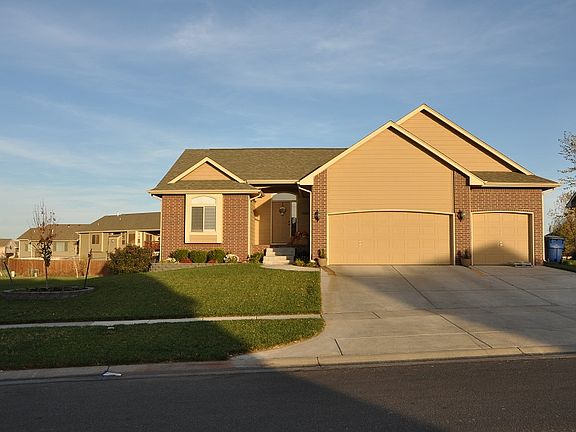 Super Ranch home in desirable Park Hill Addition to Derby. This 5 bedroom, 3 bath home is beautiful from the street and just as appealing inside! Step into the entry and you will find an open living, dining, and kitchen space perfect for your family and entertaining. This is the popular split bedroom plan with two bedrooms and bath on the north side of the home and the spacious master bedroom and private bath on the south side off the kitchen. The kitchen is large and well equipped with all appliances remaining, granite countertops, cherry cabinets, plus a nice sized pantry! You'll love having a main floor laundry complete with washer/dryer. There is an eating bar as well as large dining area with bayed window and access to the upper deck. The basement is fully finished and light-filled space with view-out windows, large L-shaped family room, two additional bedrooms, and full bath. Plenty of unfinished storage as well in the basement! Spacious yard with sprinklers and plenty of space for the family to enjoy outdoor living this Summer! This home shows beautifully and the location is perfect for walking to Park Hill Elementary and Garrett Park. Call for your private tour today before this nice home SELLS!
