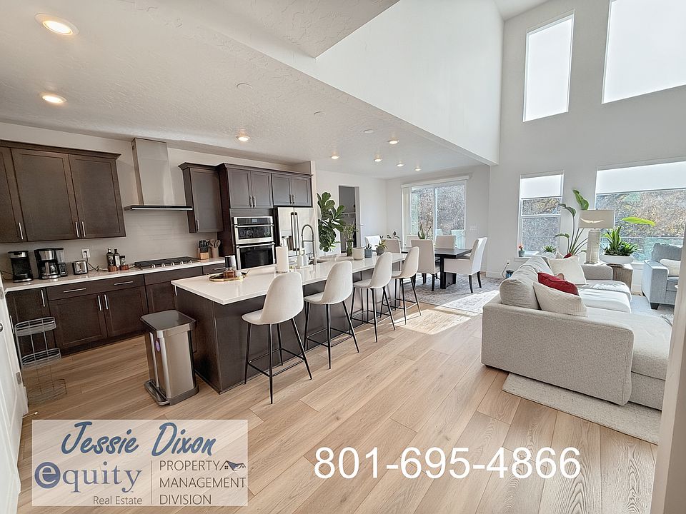 Rent: $3,650 Deposit: $3,500 (Deposit assistance is available for those who qualify) All utilities are charged on meter readings No Pets Application fee: $40 per person. All persons 18+ years old must fill out an application. Stunning 6-bedroom, 4-bath home nestled on the foothills of Kaysville, featuring incredible upgrades throughout. The kitchen showcases a spacious island, double ovens, a gas range, stainless steel appliances, an oversized pantry, and more. The main level includes a large bedroom, a full bathroom, a mudroom, and a living room with soaring vaulted ceilings. Step out onto the deck for breathtaking mountain views to the east and west, with no back neighbors. The owner's suite is generously sized, featuring an en-suite bathroom with dual walk-in closets, double vanities, and a gorgeous shower. Upstairs, the secondary bedrooms are spacious, each with walk-in closets, and the main laundry room is conveniently located on this level. The basement offers a full apartment-style setup with a walk-out to the backyard, a large bedroom with a walk-in closet and bathroom, and a kitchen outfitted with new appliances, including a stove, microwave, dishwasher, and refrigerator. The oversized garage accommodates three cars, with one side offering two-car depth. Just moments from HWY 89, this home combines luxury features with a prime commuting location. Equity Real Estate is committed to equal housing opportunities. We do not discriminate against anyone based on race, color, religion, sex, handicap, familial status, National origin, source of income, sexual orientation, or gender identity. The tenant is advised to request a Rental Price Disclosure or Good Faith Estimate to review all charges associated with the lease.