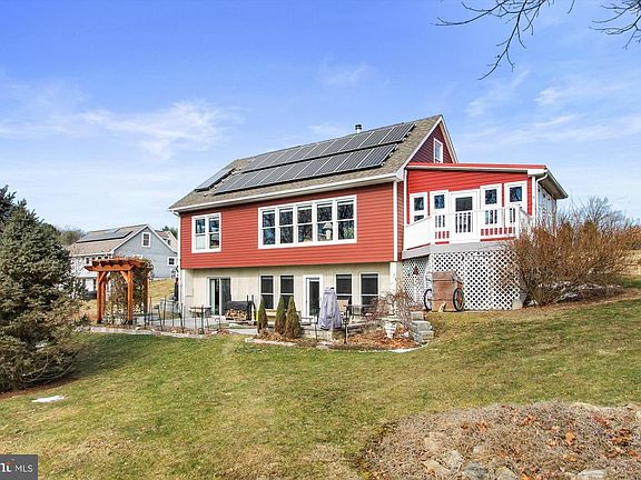 Enjoy not only a beautiful, 3 bedroom, 3 full bath, 2810 finished sqft (including lower-level walk-out basement) passive solar, open floor plan home, with an amazing view, but also the cohousing lifestyle that goes with it. There are several hundred cohousing communities in the US in various stages of formation, one of which is Hundredfold Farm. These communities are a collaborative form of living, designed to foster connections and a sense of belonging, increasing opportunities for social interaction, and creating opportunities for more conscious use of resources. Each of the 10 homes is individually owned, with shared ownership of 75 acres of rural land including community gardens, chickens, outbuildings and a community center (used for meetings, occasional shared meals and lodging for guests). It is a more sustainable way of living, featuring solar panels, solar hot water heaters, shared wastewater treatment facility that recycles water, shared ownership of outdoor eqpt and shared maintenance and other responsibilities. Respect for the environment is central to the vision of Hundredfold Farm. All community decisions are made by consensus. The home itself is flooded with natural light, 3 season room on rear, main level primary bedroom with full bath and walk-in closet, a chef's kitchen with Wolf range, 12 ft. quartz island, all new solar panels and battery within last 5 years as well as replaced HardiePlank siding. Comcast cable for great internet access. Electric bill for this house is typically $37/month, natural gas bill is typically $34/month and water/sewer are included in HOA dues. Seller will pre-pay $340/month dues through 2022! If it sounds interesting, you really should come take a look.