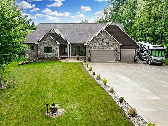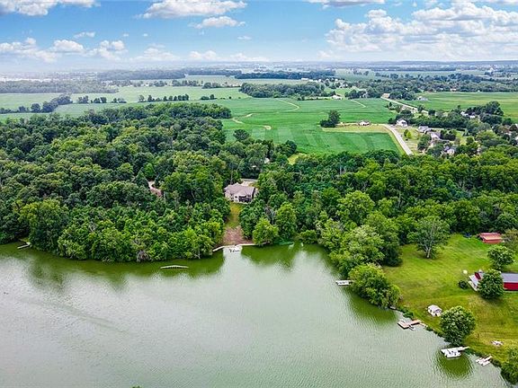 Stunning, Impeccable custom built lake home with amazing, finished basement on a 2.5+ acre wooded lot nestled midway between Columbus & Dayton. Remote enough to feel secluded, yet close to shopping & restaurants. Built in 2017, 4 bed, 3.5 bath, 5,000 sq ft of living space, 4 car garage, finished walk-out basement, 300+ ft of lake shoreline. Enjoy water activities in summer, and playing on ice through the winter. Tranquil view from the deck or sunroom. The open floorplan is open & inviting and ideal for entertaining friends & family. Enjoy watching movies in the theater room. The kitchen is large gourmet, custom kitchen with breakfast bar and large island. The upper deck & back patio have an incredible view of the lake. Plenty of garage space for vehicles and toys, and whole house generator. Priced below recent appraisal, private lake, geothermal, NELSD, minutes from 70/Columbus/Dayton, gourmet kitchen, single open floorplan, finished walkout basement. Association fee $175/year. Hurry!
