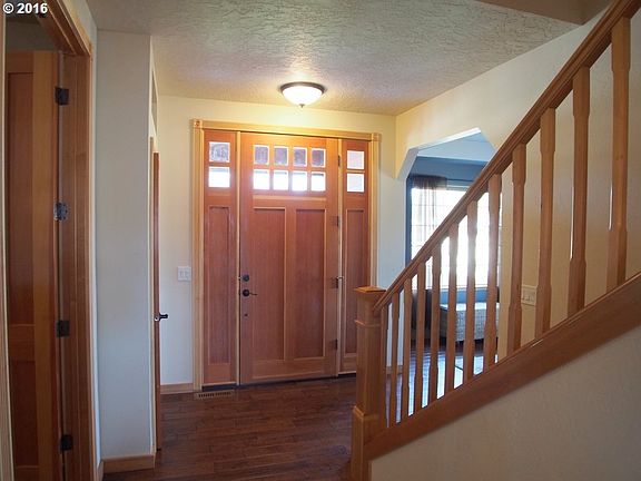 Spacious custom home with 9 foot ceilings and views of Mt Hood. Entry w/open staircase, double door den on the right & living room on the left. Open kitchen with granite counters, under mount sink, breakfast nook and attached dining room with full view door to south facing deck and mt hood view. You'll find a half bath & mud room between kitchen & garage for easy access. Upstairs there is a master suite with tile shower, jetted soaking tub, double granite vanity walk in closet and spacious bedroom. Large family room w/vaulted ceilings and lots of room for family events and parties. The studio over 2nd garage would be great for an artist or office space with full bath and kitchenette. Zoning doesn't allow for it to be a full apartment with cooking facility. All located on a large lot with plenty of parking and views across the hills and orchards. Includes 4 garage bays and electric and sewer hook up for RV.