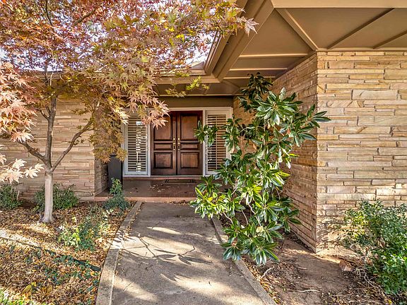 Listed by Teresa Young, Kay's Real Estate, 580-467-7355. As you step inside, you are greeted by a bright and inviting interior with sleek hardwood floors, designer lighting fixtures, and custom finishes. The open-concept living dining space flows seamlessly into the gourmet kitchen. The primary suite is a true retreat, featuring a large bedroom, three closets with built-ins and with a spa-like ensuite bathroom, and walk-in closet. Each additional bedroom offers ample space & closet space with built-ins, The updated kitchen offers granite counters, Island, quality appliances, and a light-filled breakfast room with views of the both patio areas, green house, storm shelter, & a grassy backyard. The oversized garage includes a large workbench & generous storage. Recent updates to the home include heat and air system, roof, storm shelter, 2nd oven, and lighting. throughout the home