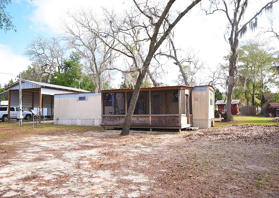 Fisherman's retreat in Steinhatchee! The mobile home is currently used for storage, but has the capability to be a nice bunk house for guests. There is a nice screened porch to hang out on and escape the no-see-ums. What we really love about this property is the two RV hook ups. One is a full 30 amp service with electric, water, and septic. The other is just electric, but could easily have water and septic run to it. This property is located just a golf cart ride away from all the amenities Steinhatchee has to offer and it sits high and dry! For added convenience there is a covered metal shed to store a T-top boat or your RV out of the elements. Call today to schedule a private tour.