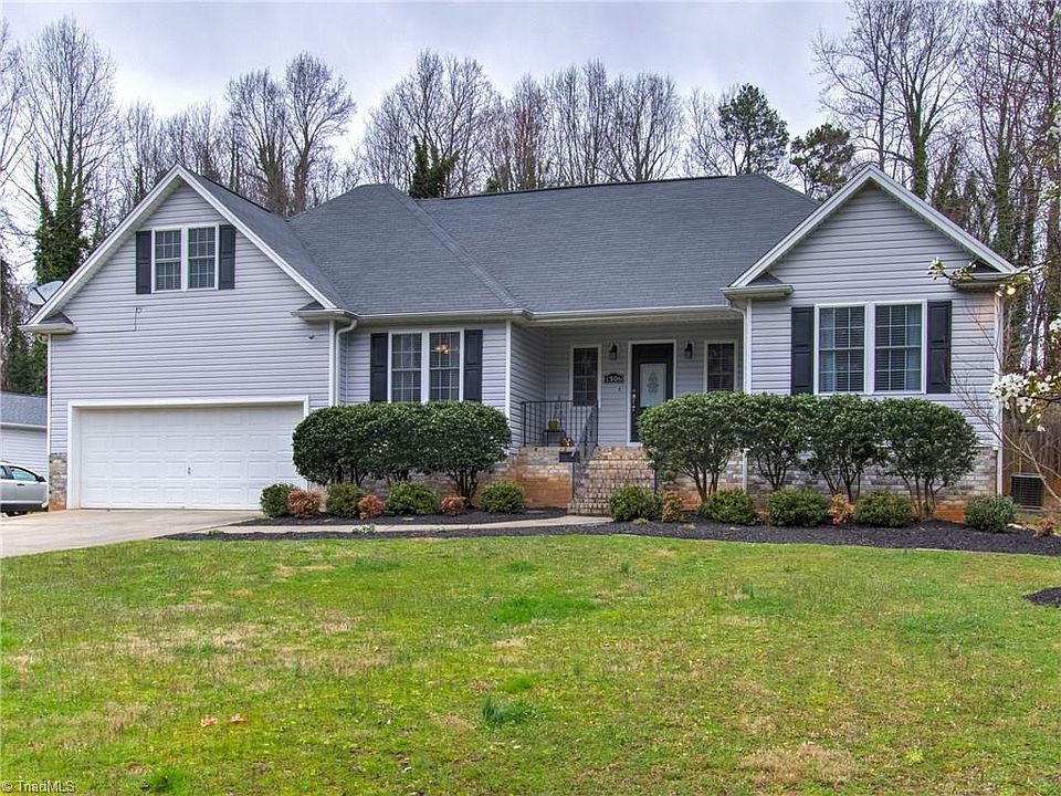 Incredible Ranch w/low maintenance vinyl siding nestled on oversized 0.62 acre lot with rear privacy fence, deck & firepit. Engineered wood floors in entry & formal dining, perfect for entertaining. Living room w/vaulted ceiling & gas fireplace. Kitchen w/gleaming white cabinetry, granite, breakfast bar. Split bedroom floorplan offers private master retreat w/WI Closet & En Suite bath, dual vanity, soaking tub, separate shower. 2 addtl beds share hall bath. Bonus up. Recent paint. Move in ready.