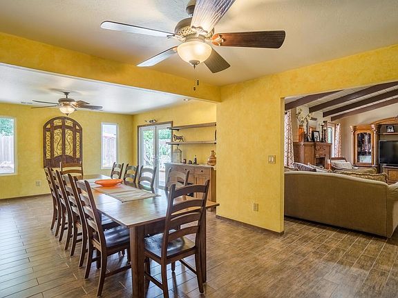 Gorgeous North East Selma home. Location, location, location. Nice floor plan with HUGE formal dining room open to the kitchen. Kitchen offers breakfast bar, granite counter tops, pantry, plenty of storage space. Living room with a handsome fireplace and lots of natural light. Beautiful, newly updated flooring throughout. Nicely sized master with double sinks in master bath and large walk in closet. Two HVAC's and dual pane windows for greater energy efficiency. Easily managed yard too. Make your appointment to see this lovely home today!