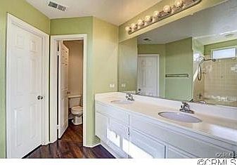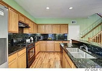 This Amerige Heights home shines with upgrades throughout. Smooth ceilings, recessed lighting, and rich wide-plank laminate hardwood flooring beautifully compliment large light catching dual pane windows throughout. The spacious living room with fireplace seamlessly flows into the gourmet kitchen with granite countertops, bespoke wood cabinetry, black appliances, gas range with hood and center island with stainless sink. Upstairs, a large loft adds extra relaxing and entertaining space. Enjoy the privacy of the sizeable master suite with dark hardwood floors, voluminous closet and en suite bathroom with dual mirrored vanity and shower/bathtub combo. The backyard, facing an expansive greenbelt, has mature landscaping and easy access to the surrounding community.